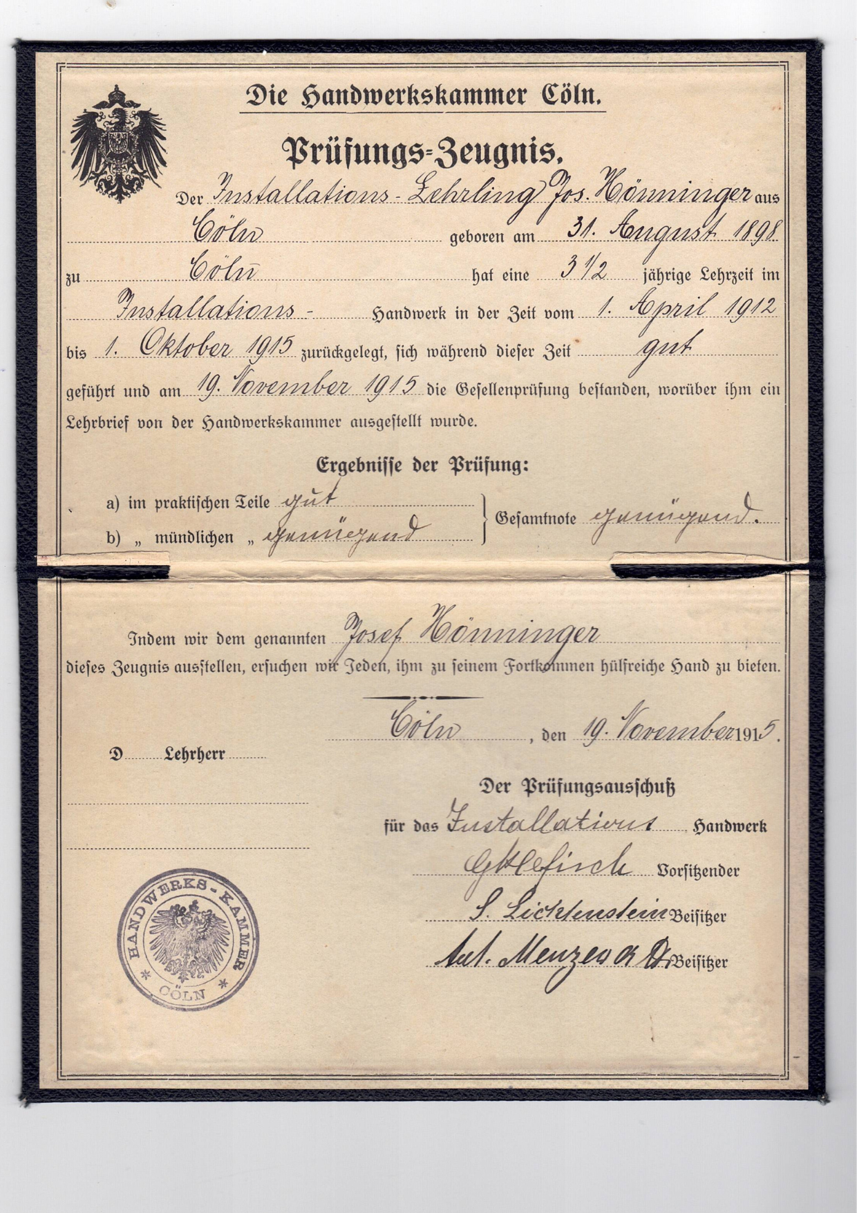 Die Josef Hönninger GmbH ist ein familiengeführter Meisterbetrieb in vierter Generation mit über 100 Jahren Erfahrung in der Sanitär- und Heizungstechnik. Der Name „Hönninger“ steht für zuverlässige Handwerksqualität im Kölner Veedel Sülz/Klettenberg und ist seit Urgroßvater, Großvater, Vater und Sohn fest mit dem Sanitär- und Heizungshandwerk verbunden. Ein Zeugnis der Handelskammer Köln aus dem Jahr 1915 dokumentiert die frühen Anfänge dieser handwerklichen Tradition. Bis heute verbinden wir dieses gewachsene Fachwissen mit modernen Lösungen sowie persönlicher Beratung, ehrlichen Empfehlungen und zuverlässigem Service von der Planung bis zur Umsetzung.